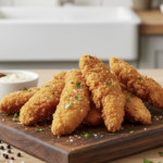 10 kg Panierte kipfiletstrepen 28g – doos van 10 × 1 kg