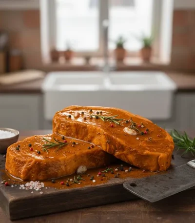 ±9,1 kg Runder Entrecôte Steak – Gemarineerd Peper-Paprika (1,1–1,2 kg per verpakking)